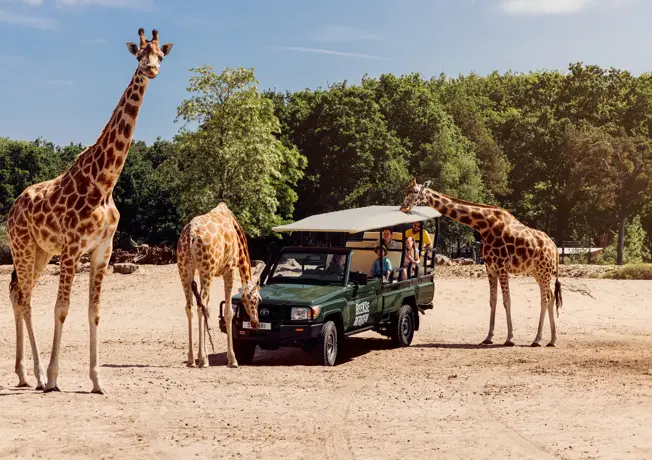Im Safaripark Beekse Bergen, dem größten Wildlife-Park der Benelux, erleben Sie eine spannende Safari! Entdecken Sie die Big Five aus nächster Nähe! Aber während der Auto-, Wander-, Bus- oder Bootsafari kann man auch die Giraffen, Schimpansen, Nilpferde, Krokodile und viele mehr genießen.