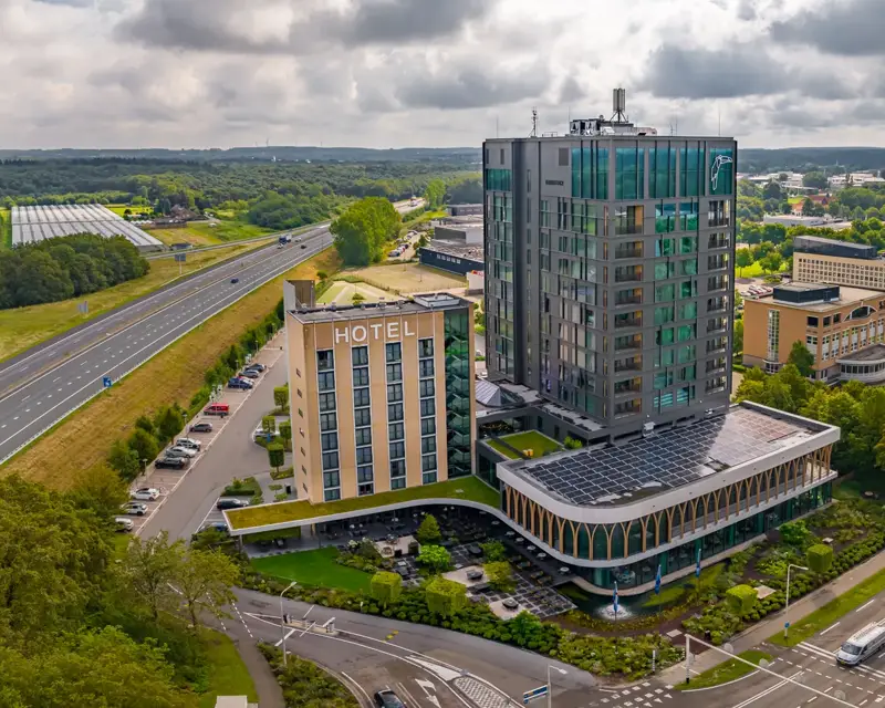 Hotel Venlo ist mit seinem nachhaltigen und Cradle-to-Cradle-inspirierten Ansatz einzigartig in Nord-Limburg und liegt am Stadtrand, entlang der A67 Richtung Deutschland. Das Stadtzentrum von Venlo ist 10 Minuten entfernt. Flughafen Düsseldorf und das Zentrum von Eindhoven und Nijmegen sind in 45 Minuten erreichbar.