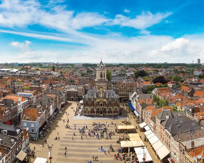 Suchen Sie einen schönen Ort für einen Städtetrip? Dann besuchen Sie die vielseitige Stadt Delft! Diese stimmungsvolle Stadt ist voller Geschichte und bekannt für Delfter Blau, den Maler Johannes Vermeer und seine wunderschönen Kanäle. Entdecken Sie die einzigartigen Museen in Delft, lebhafte Märkte und malerische Straßen, in denen Sie spazieren gehen können. Delft bietet für jeden etwas.