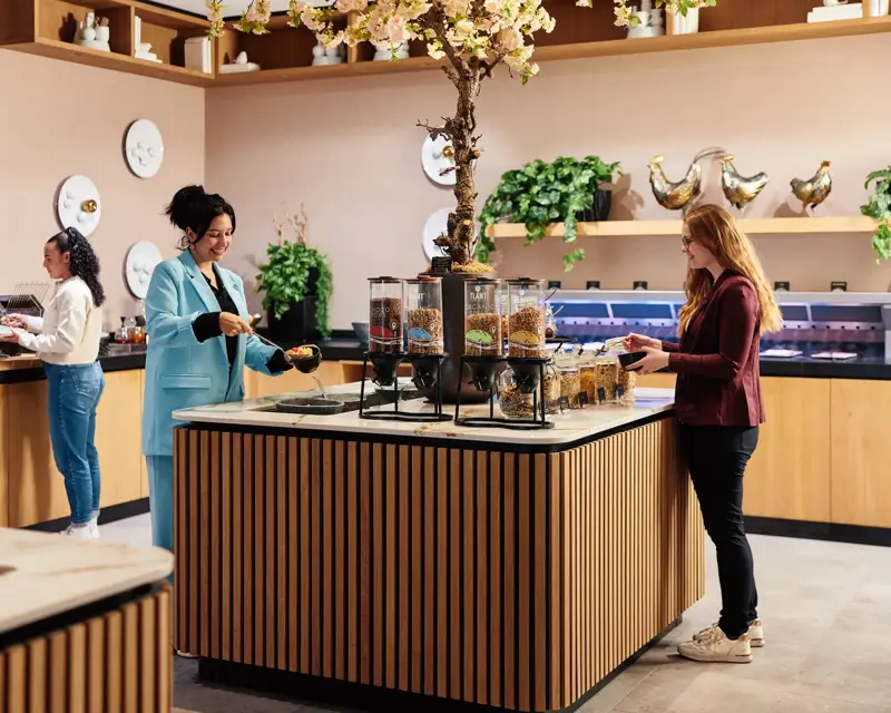 Des soupes fraîches, salades et pains de luxe aux plats chauds préparés en direct : tout est présent. Inclus café, thé, jus et lait, vous n'avez plus à vous soucier de rien. À Hoogkerk, vous pouvez même enrichir votre déjeuner avec une bulle festive sans alcool ou un délicieux dessert comme le ‘Sweet Cherry’.